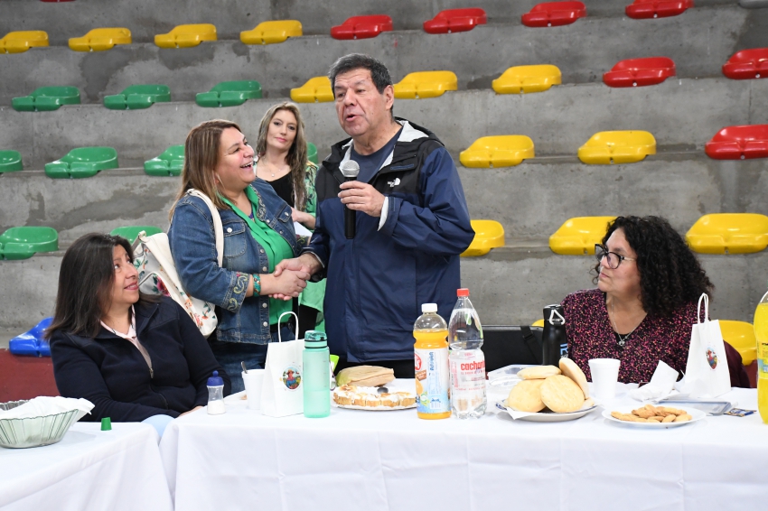 Nuestro Alcalde, Jaime Veloso Jara, compartió hoy un desayuno en el Gimnasio Bicentenario con mujeres de sectores rurales de la comuna, en una actividad que fue organizada por la Unidad de Desarrollo Rural y Fomento Productivo del Municipio. El jefe comunal, quien estuvo acompañado de la concejala Tania Villalobos, valoró el aporte que ellas hacen al desarrollo comunal y a la economía familiar y territorial.